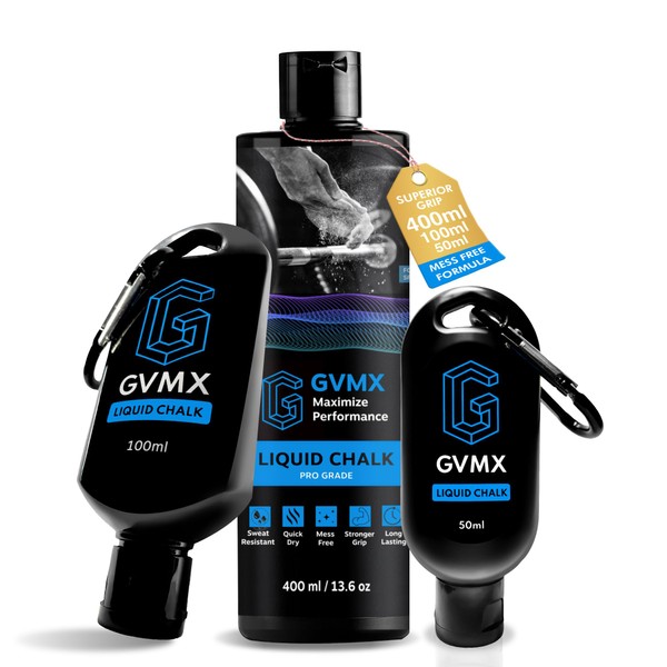 50ML/100ML/400ML Superior Grip Premium Liquid Chalk. Long Lasting Mess-Free Gym Chalk for Weightlifting, Gymnastics, Climbing. Fast Drying Refillable Gym Accessories. (400ML + 100ML - 1 Pack)