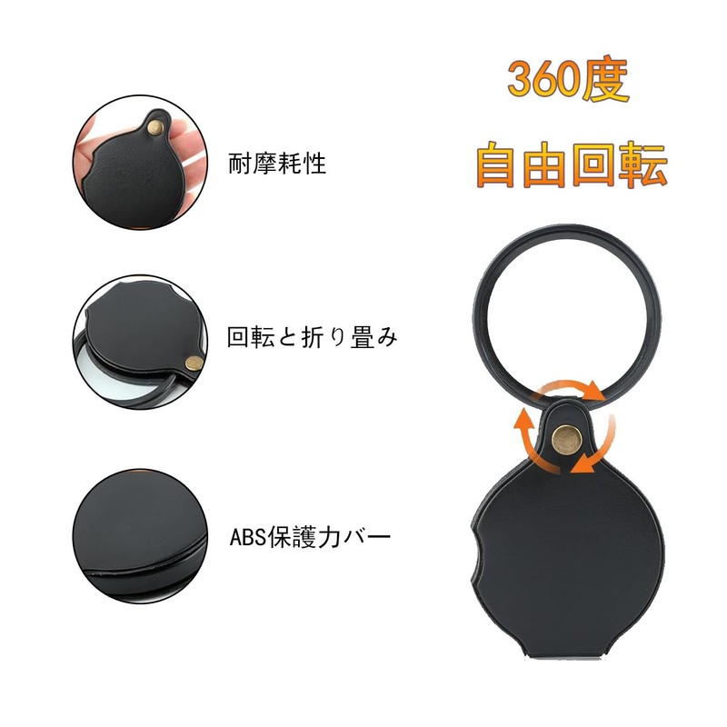 ポケットルーペ 折り畳み式 レンズ径 50mm 手持ちルーペ レザーケース 帯便利 回転収納 10倍 虫眼鏡 子供の自然観察 高齢者 新聞 読書用 小型 拡大鏡 【2個入り】