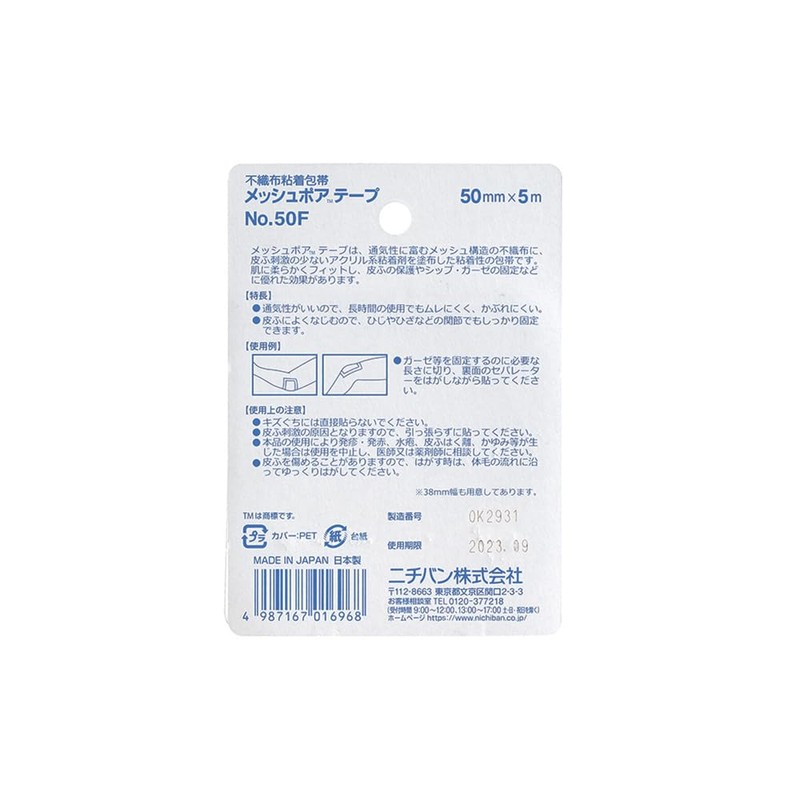 ニチバン 粘着包帯 メッシュポアテープ 50mm幅 5m巻き 1巻