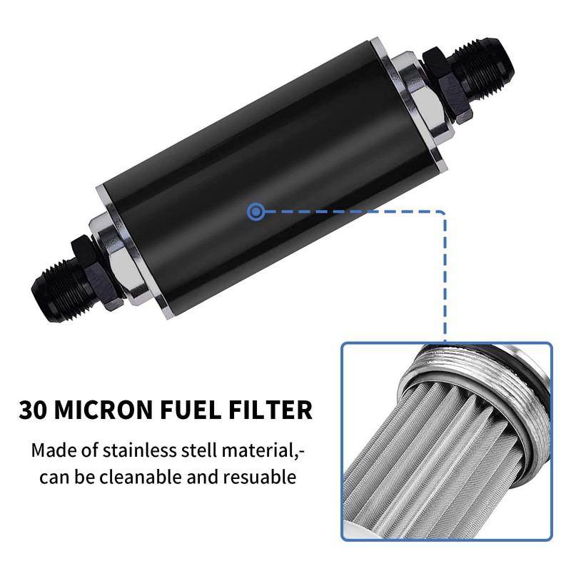 - Fitment: It fits the most vehicles, for use in both carbureted and EFI systems,recommended to install after fuel pump as secondary filter.