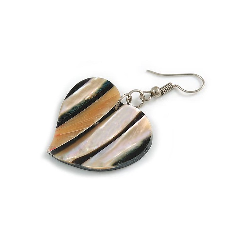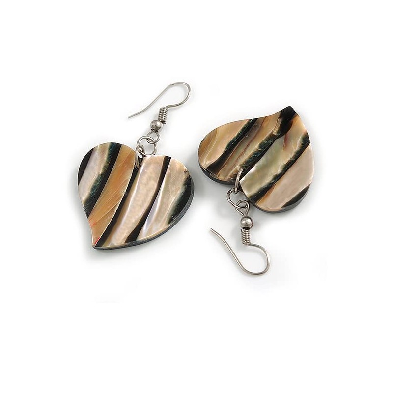 50mm L/Black/Brown/Natural Heart Shape Sea Shell Earrings/Handmade/Slight Variation In Colour/Natural Irregularities
