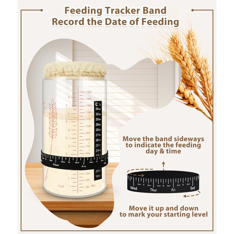 • Easily Control Starter Process: Our fermentation jar kit includes a feeding date strap to help you accurately record feeding time and the level. With a temperature strap for real-time observation of your sourdough starter’s temperature