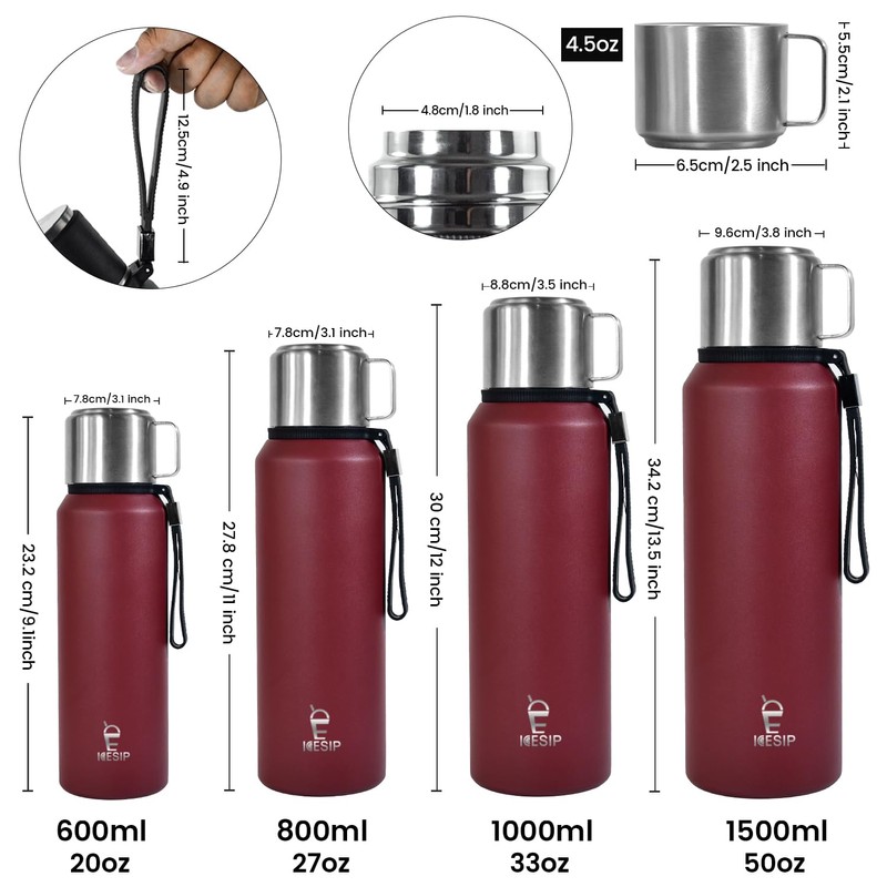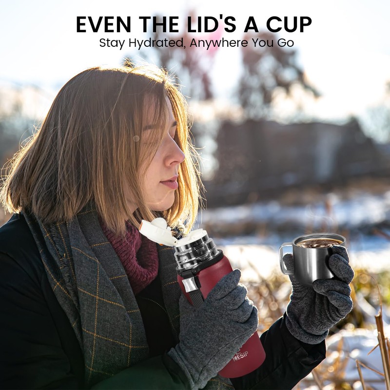 - 【HOT AND COLD WATER BOTTLE】: Our Vacuum Insulated Water Bottle is the perfect everyday travel mug for your hot & cold beverages. Designed with high-quality 316 stainless steel, this tea & coffee bottle will maintain your beverage's temperature for up to 12 HOURS! Additionally, Thermos hot drinks comes with a cup for easy drinking, adding to its versatility.