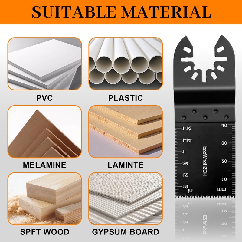 - Versatile Cutting Performance – Titanium coated oscillating tool blade can be used for wood, plastic, drywall, PVC, and soft metals, making it ideal for remodeling, carpentry, and general home repair. Perfect for both professionals and DIY users.