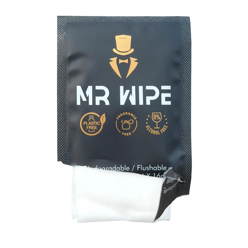 With 50 individually packed wipes, MR WIPEs are the ultimate solution for cleanliness on the go. Keep them at your desk, in your car, bathroom, gym bag, or carry-onโwherever you need them most. Compact, discreet, and ready for any situation, these wipes guarantee freshness when you need it most. Donโt rely on unreliable toilet paperโbring your own flushable wipes for a cleaner, more refreshing experience. Whether youโre at work, on the road, or at home, these travel-size essentials have you covered. Each wipe is 16cm x 14cm, perfectly sized for a quick and effective clean.