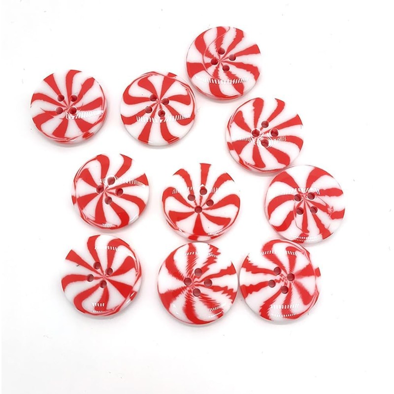 Indulge in the nostalgic sweetness of these charming candy buttons! This set of 50 vibrant red and white striped buttons, crafted from high-quality resin, will add a delightful touch to your crafting projects. Measuring 1 inch in diameter, these versatile buttons are perfect for embellishing clothing, accessories, home decor, and more. Their classic peppermint candy-inspired design captures the essence of holiday cheer and childhood memories. Elevate your DIY creations with these whimsical buttons that are sure to delight and enchant. Unleash your creativity and let these delectable buttons bring a touch of joy to your handmade masterpieces.