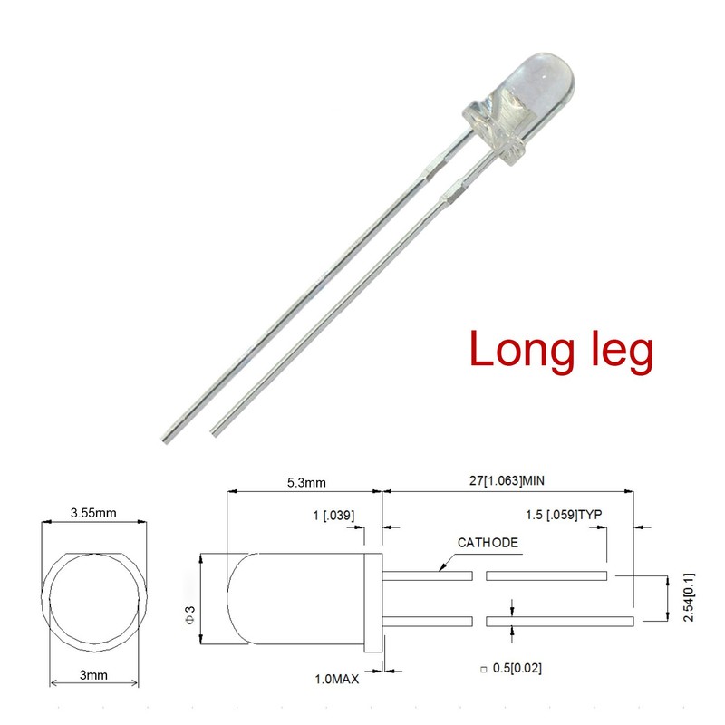 - Quantity: 50 Pcs of 9-12VDC 3mm White LED