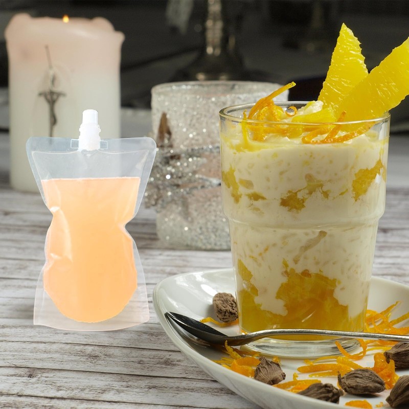 Package Content: 50 pieces plastic spout pouches in clear. 6 Capacity to choose including 100ml, 200ml, 250ml, 300ml, 380ml, 500ml. You can refrigerate the beverage in summertime for a cooler experience