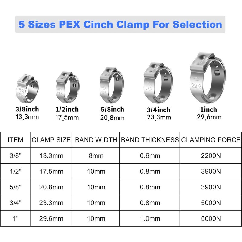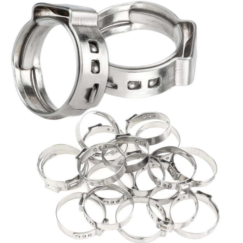 - 【Easy to Install】 The slide ear clamp ring onto the tube, push the pipe onto the fitting and squeeze it with a clamp tool. Provide a firm, leak-free and reliable crimp joint connection.