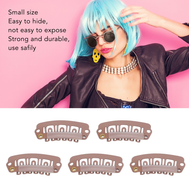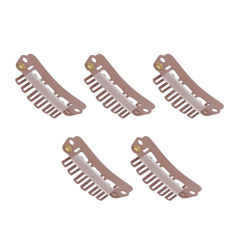 50pcs 6 Tips 6 Teeth Wig Snap Clip Metal Stainless Steel Hair Grips for Wigs Hair Extension Light Brown