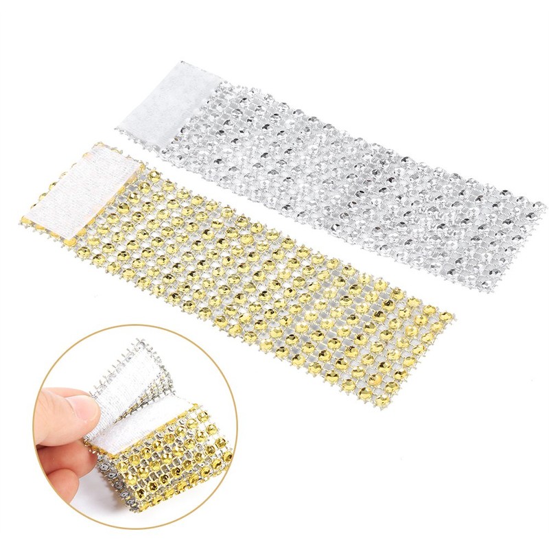 - BEAUTIFUL AND ELEGANT--Each artificial diamond looks like real actual rhinestones/crystals in diamond mesh ribbon. Perfect for using as napkin ring or chair sash bows holder. You can also use it to wrap bouquet, glass bottle, candle holders, cake stands, gifts, arts and crafts, etc.
