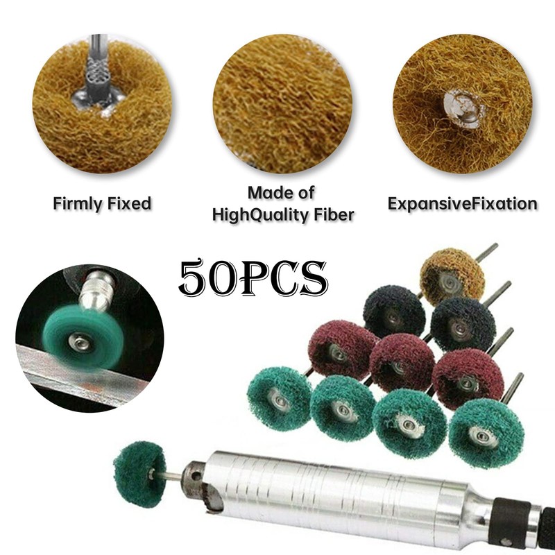 50Pcs Abrasive Buffing Wheels, 1 Inch Buffing Polishing Wheel Set with 1/8 Inch Shank, 10Pcs Each of 120 180 320 400 800 Grit Souring Pad Abrasive Polishing Wheel for Rotary Tool, Rust Removal