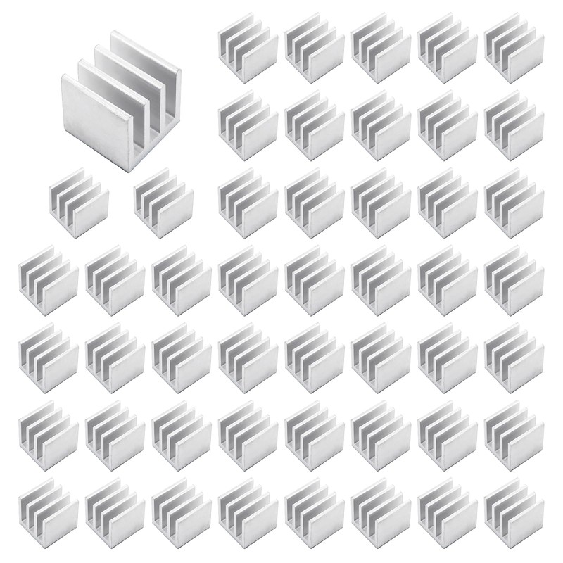 50pcs Aluminum Heatsink 10x10x10mm + Thermal Conductive Adhesive Tape Mini Small Heat Sinks for Cooling VRM GPU Stepper Driver Motor MOSFET Regulators