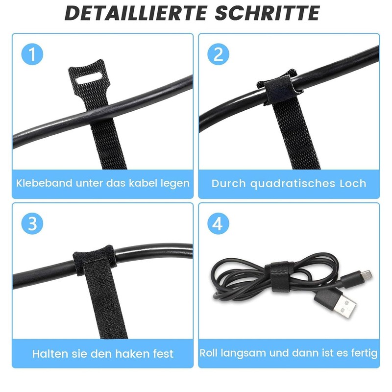 - Easy to Use:These electrical cable ties features hook and loop design simply insert the rounded end through the hole and pull the strap tight; it firmly wraps onto itself. The cable wrap opens and closes easily and quickly.