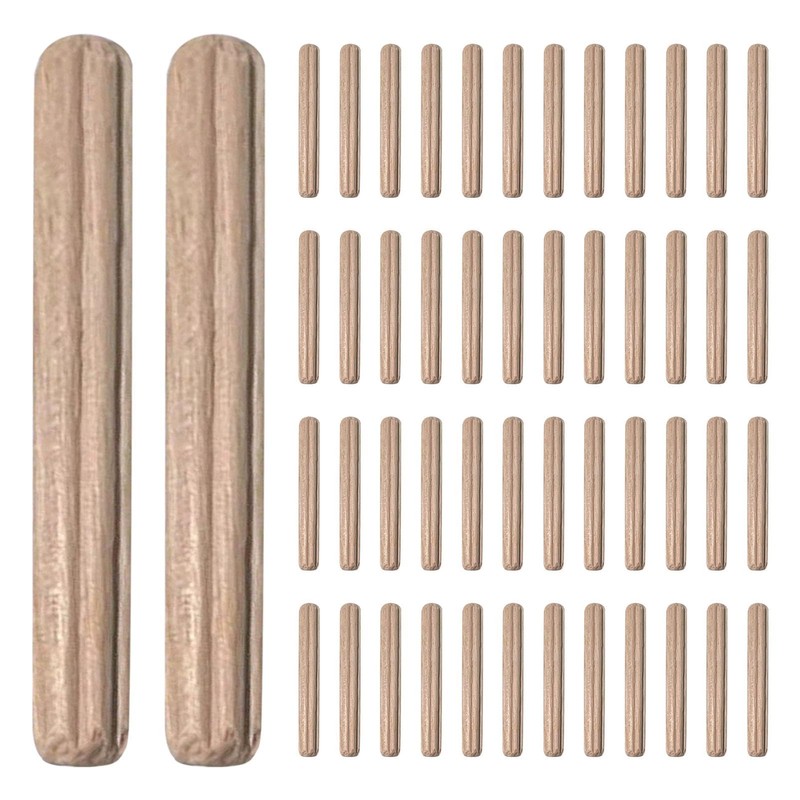 50PCS Cabinet and Furniture Dowel Pins, Hardwood Grooved Fluted Dowels for Drawers, DIY Craft, Shelf Assembly, And Woodworking Projects