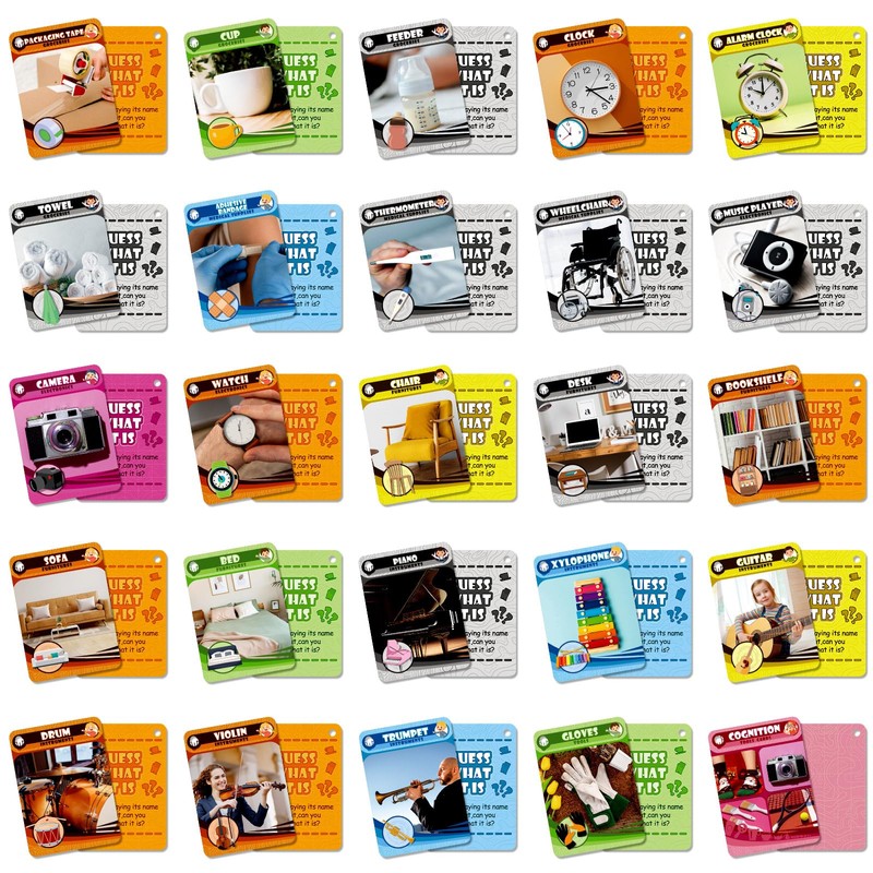 • Everyday Items Card Game for Kids: The common items cognitive cards for kids are not only educational, but also fun. They can be played with multiple players,The game also helps children develop their memory, attention, and problem-solving skills.