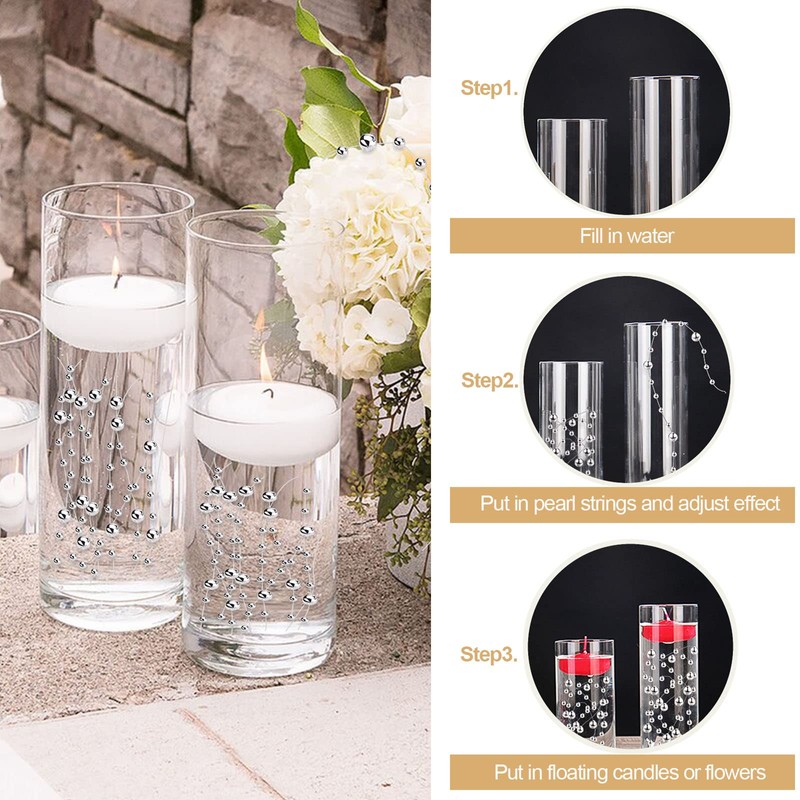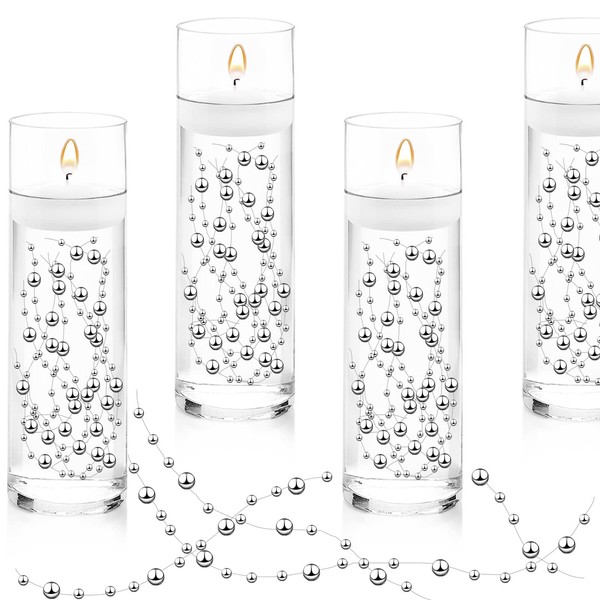 50Pcs Floating-Effect Silver Pearl Strings for Floating Candles, 13.5in Faux Pearls for Vase Filler, Centerpiece Table Decorations for Wedding, Party, Event (Silver)