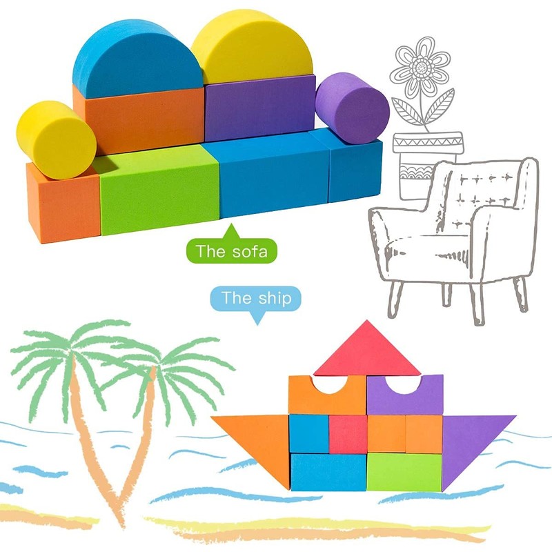 • Resistant and Safe Construction: Made from non-recycled, non-toxic, light weight, resistant, and high density EVA foam. The blocks have rounded edges and a smooth painted finish that won't splinter with play. Soft sponge protects your child's safety and prevents children from colliding.