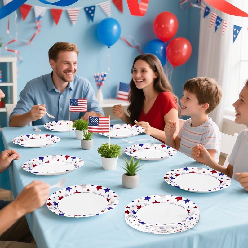 - 【Wide Application】Decorate your party more unique and beautiful by using these American flag pattern tableware at the patriotic party, fourth of July party celebration of election, Veterans Day even birthday party. A little simple decoration can make your party to attract the attention of all guests. You can also use it to decorate your different parties for kids and adults