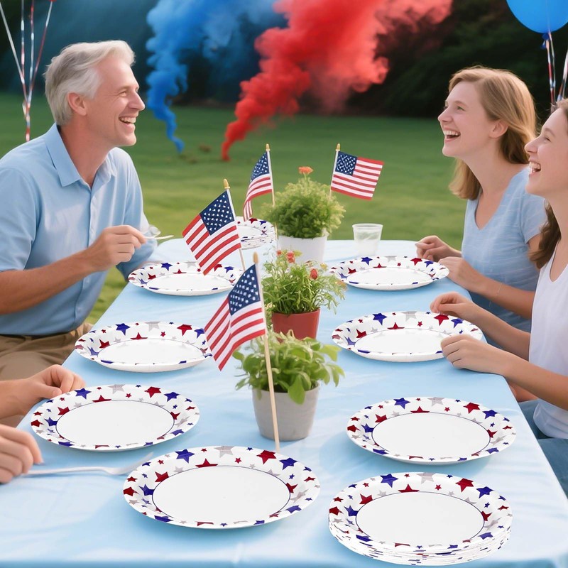 - 【Wide Application】Decorate your party more unique and beautiful by using these American flag pattern tableware at the patriotic party, fourth of July party celebration of election, Veterans Day even birthday party. A little simple decoration can make your party to attract the attention of all guests. You can also use it to decorate your different parties for kids and adults