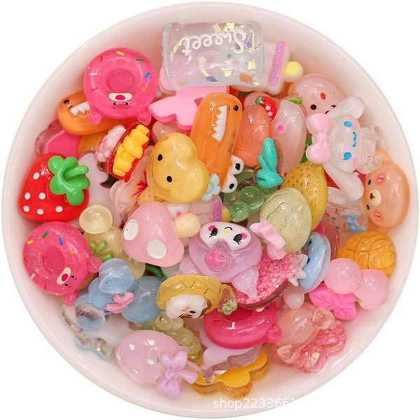 50pcs Slime Charms Cute Set,Random Bulk Mixed Resin Charms Set Ornament Scrapbooking