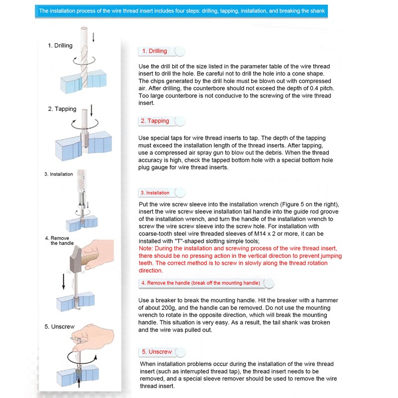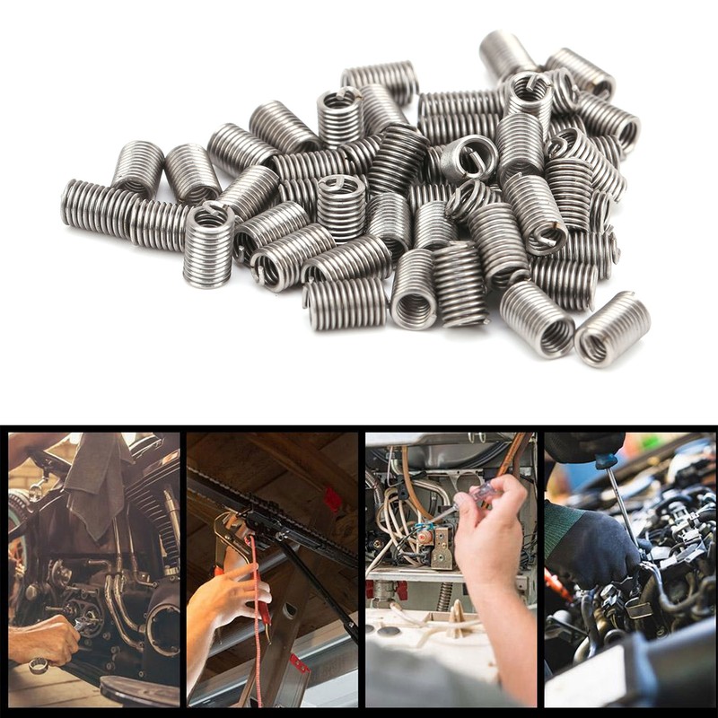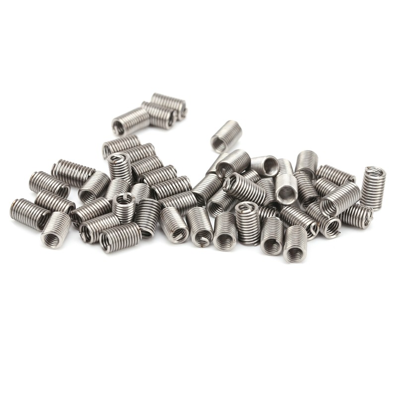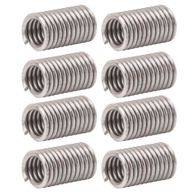 1、These wire thread inserts can be used to switch between metric and inch threaded holes, which is convenient and quick. 2、The thread repair socket is made of 304 stainless steel, which has high strength and wear resistance and is not easy to deform. 3、The wire thread insert has elasticity and can distribute the pressure to protect the thread of the workpiece and prolong its service life. 4、In the event of thread errors or repairing damaged female thread holes, the wire thread insert can be used as a repair tool. 5、These repair sockets are suitable for the manufacture of machinery and equipment such as aviation and ships, automobile maintenance, hardware and electronics.