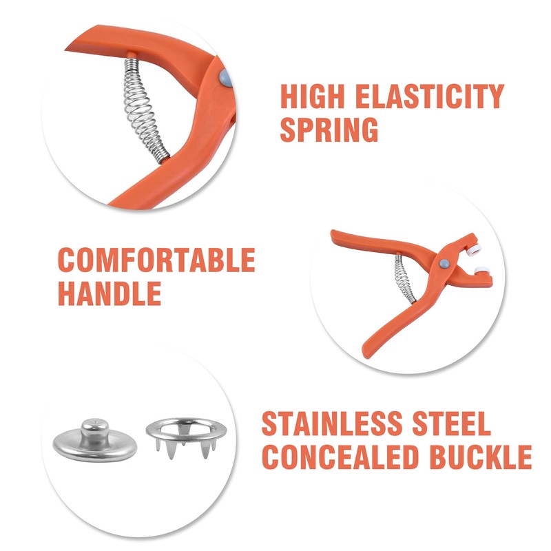 - 【Easy to Use】The snap kit is easy to operate, suitable for installing 9 mm five claw buckle snap. Just insert the buttons into the tool and press the handle to pierce the fabric, even beginners can easily use it.