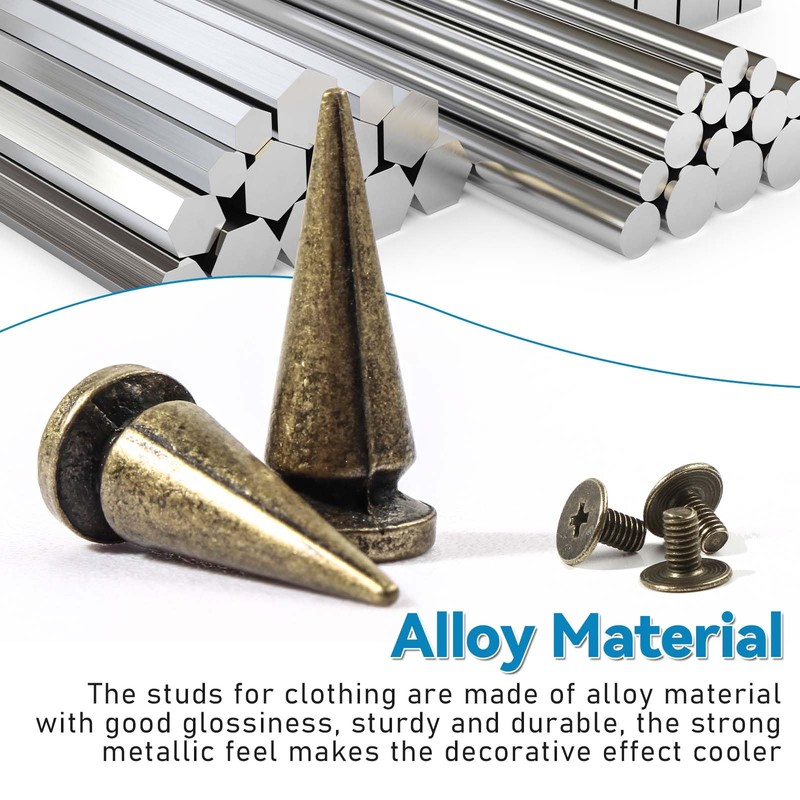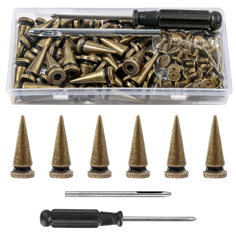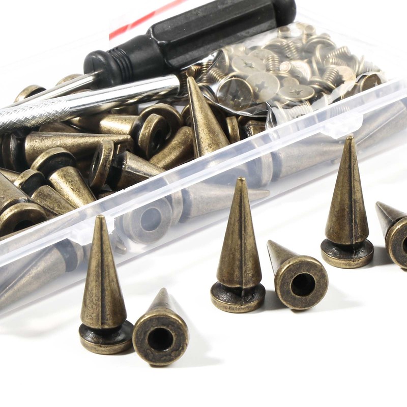 - Spikes and Studs Kit:The bronze studs and spikes set includes 50 sets of 10x25mm spikes, 1 hole puncher, and 1 screwdriver.