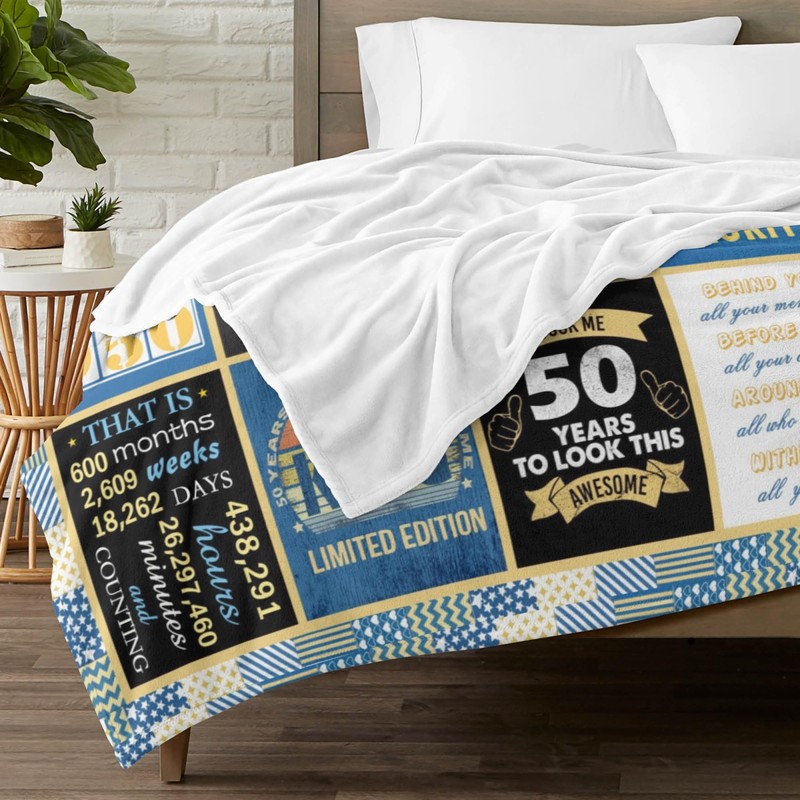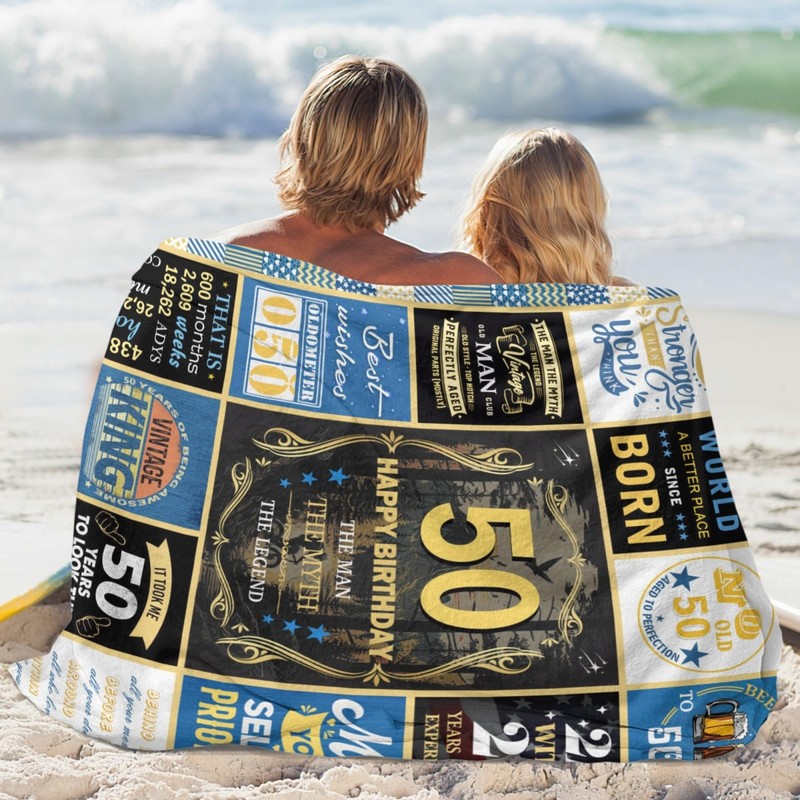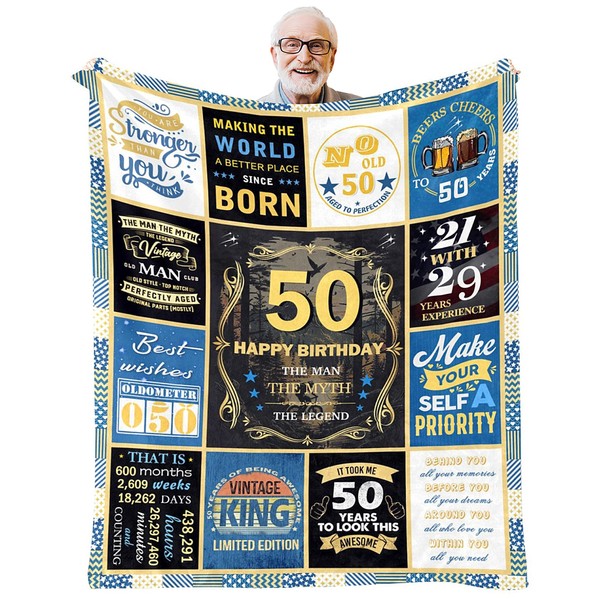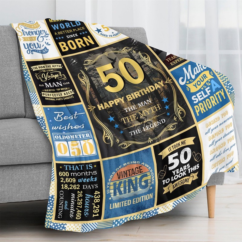 - 50th Birthday Gift: Happy 50th birthday! 50th birthday gifts for men. 50th birthday is a big day, which is definitely worth celebrating. Designed for the 50th birthday, 50 year old gifts for him. This birthday blanket can be at birthday parties to express wishes and love given to relatives and friends, such as dad, husband, uncle, brother, grandpa etc.