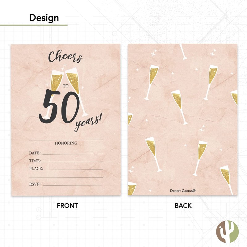 Desert Cactus 50th Birthday Style R Happy Birthday Invitations Invite Cards (25 Count) With Envelopes Girls Boys Kids Party (25ct)