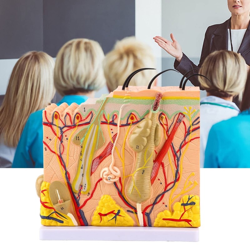50X Three Dimensional Human Skin Magnified Model, Biology Teaching Skin Anatomy Model with 25 Labeled Diagrams, for Students and Teachers