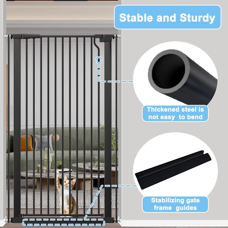- Stable and Sturdy: Tall dog gate is made of sturdy metal, and for every extension we add to the cat gate, we pair it with a guide rail to keep it stable