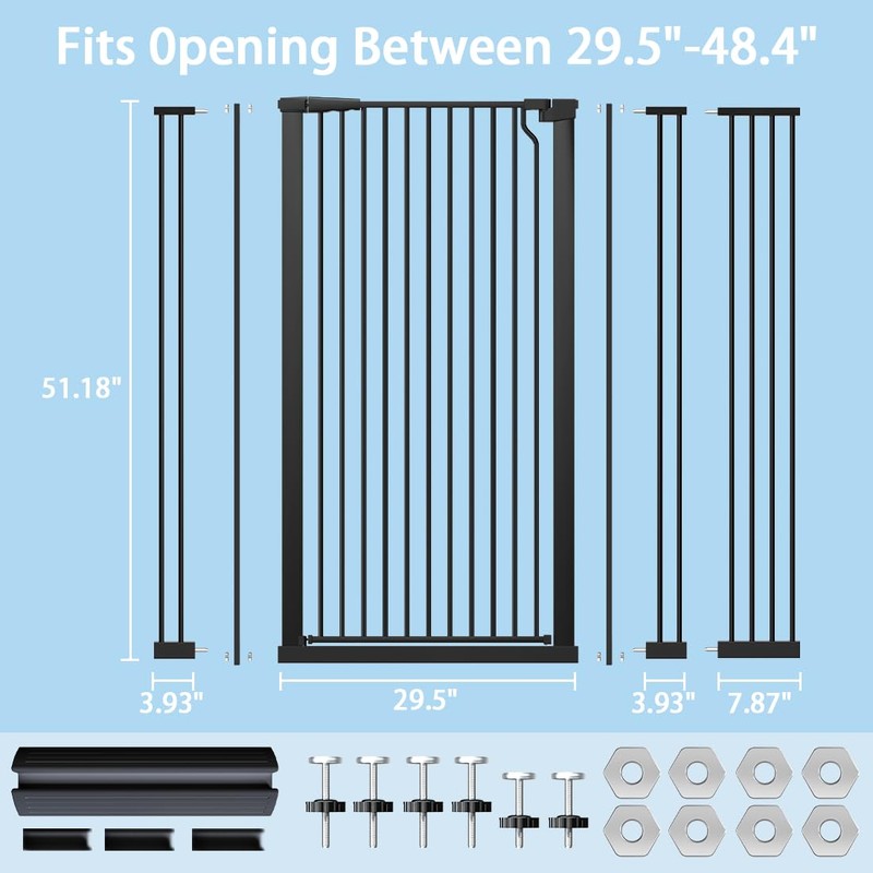 51.18" Extra Tall Cat Gate for Doorway,29.5"- 48.4" Wide Auto Close Tall Pet Gate No Drilling Pressure Mounted for Hallway Kitchen,Black