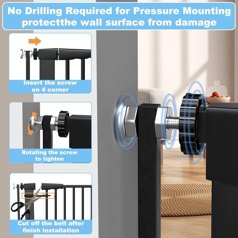 - Easy to Install: Tall baby gate come with 4 adjustable pressure bolts for a pressure mounted installation that requires no drilling and no tools to install without damaging the walls of your home