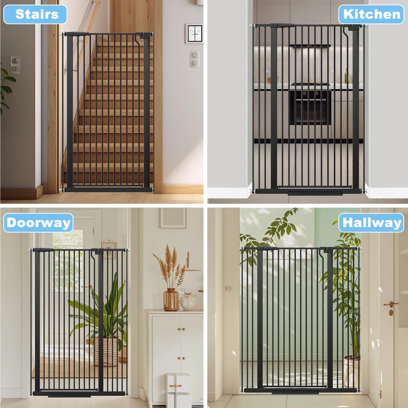 - Security Double Lock: Our tall pet gate feature a double lock safety release that makes it difficult for young children or pets to open the door, ensuring safety