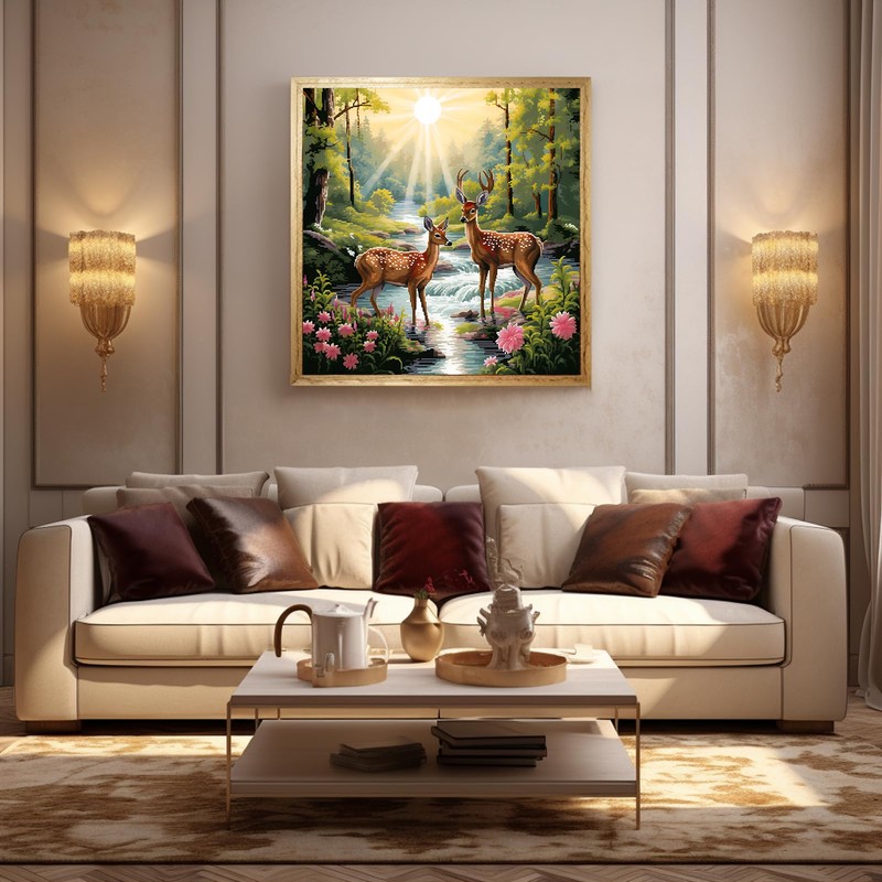 51buyoutgo Deer 11ct Cross Stitch Kits, 11 CT Funny Pre Printed Counted Stamped Cross Stitch Embroidery Needlepoint Patterns Kits for Adults Beginners Animal Crossstitch 40x40 cm