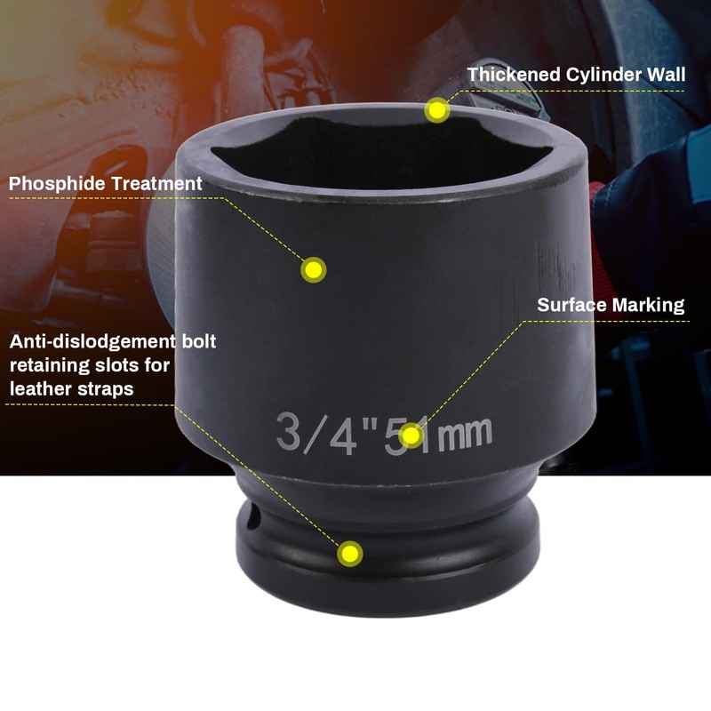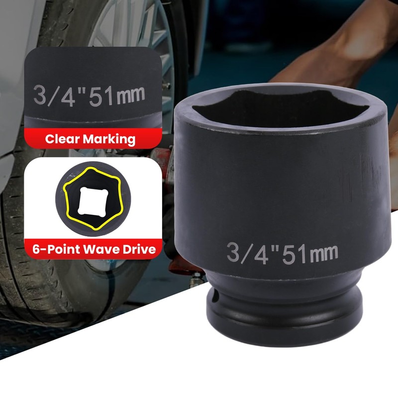 51mm Deep 6 Point Impact Socket 3/4" Drive Cr-Mo Alloy Steel Metric for Automotive and Industrial Applications