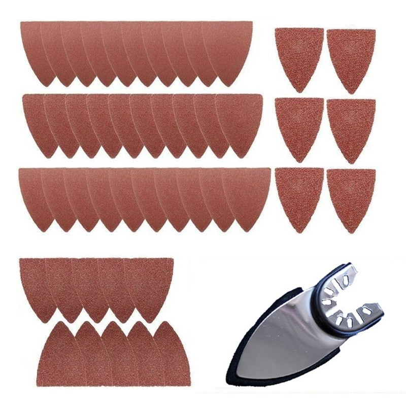 • Premium 51-Piece Triangular Sanding Pads: This package includes 1 finger oscillating multitool 50 sheets of mouse detail sander sandpaper in 5 different grades: 60/80/120/180/240 grit, with 10 pieces each, which can meet the use needs for a certain period of time, eliminating the trouble of frequent purchase and replenishment, and is convenient for large-scale or continuous sanding work.