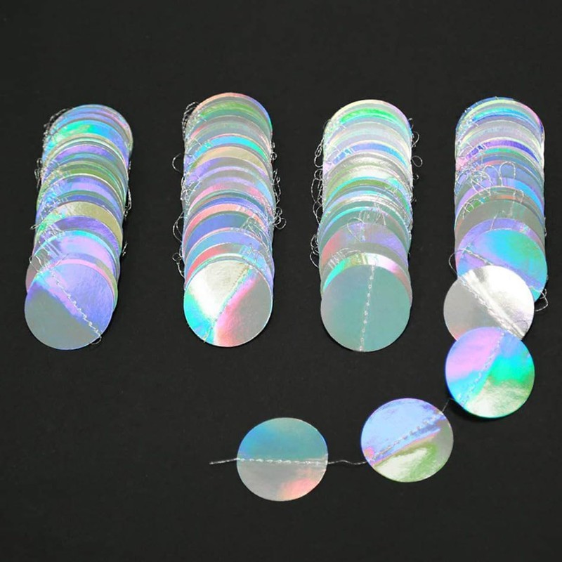 52 ft Colourful Glitter Paper Circle Dots Garland, 4 Pieces Hanging Iridescent Round Garland for Birthday Wedding Party Decoration