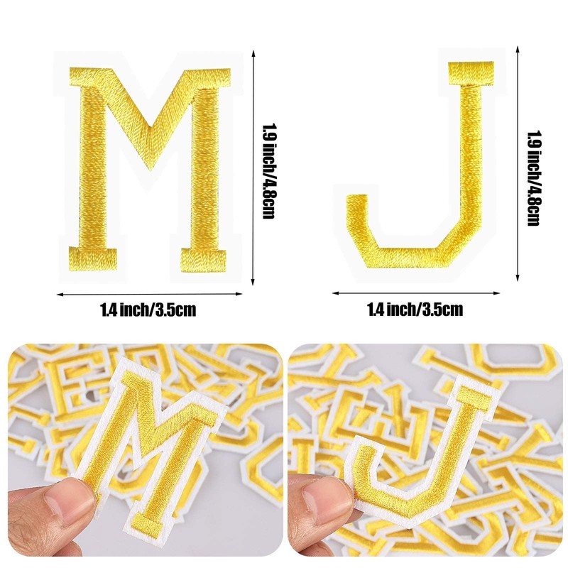 • ღ 【Gold Iron on Patches Set】: This iron on letters for fabric set is available in 52 pieces of noble golden color and 1 piece Gold-plated sewing needle,meet your different needs.Each letter Embroidered Patch measures about 1.56 inch in height and 1.18 inch in width.
