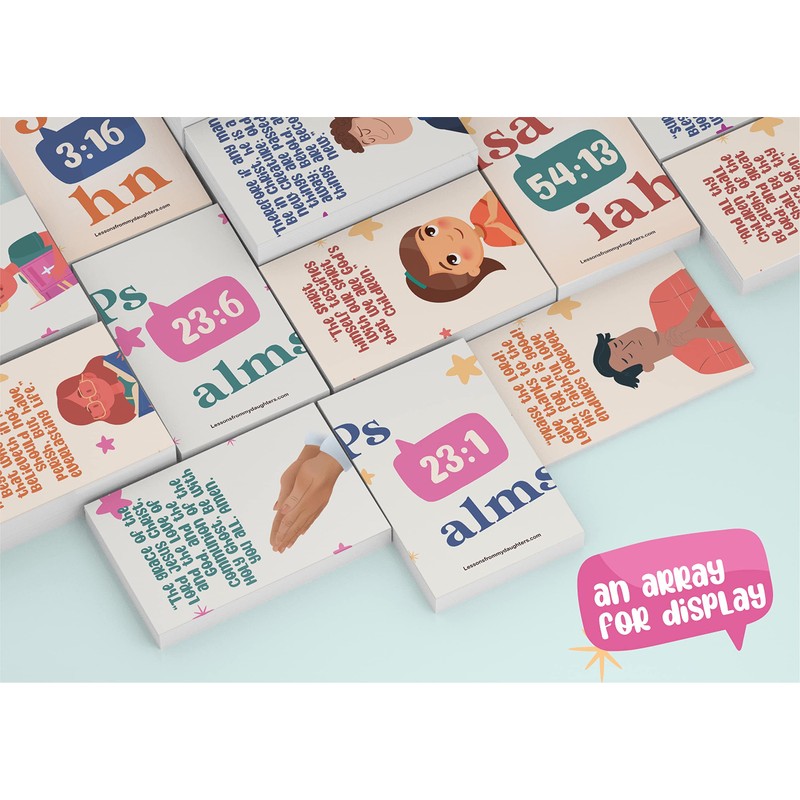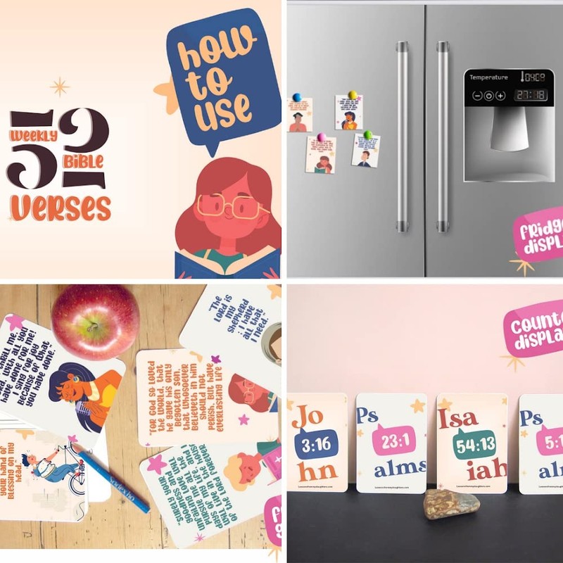 Each box contains 52 cards and stickers, each card is numbered with weeks of the year and can be used for meditation, affirmation and memorization of bible verses. There is no right or wrong way to use these cards but I will recommend sticking them in the space you spend the most time at work or home to best enjoy it. You should change the cards weekly to maximise its use but if you forget, that's okay, just change it when you remember. A few ways to use these cards : - Stick them on the fridge using a fridge magnet or the sticker that comes in the box - Place it on your table in the office or by your computer - You can also put a card in the kid's lunch box This is a perfect gift for kids and families.