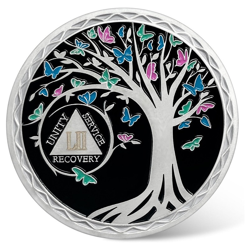 52 Year Sobriety Coin - Recovery Butterfly Tree of Life AA Coins - 52 Year AA...