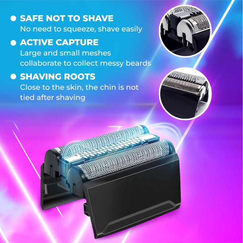 - ✅ 【Upgrade System】: Featuring a super lift & cut system, the 52B Foil & Cutter replacement head swiftly cuts through your beard without pulling, while the design protects your skin from scratches.
