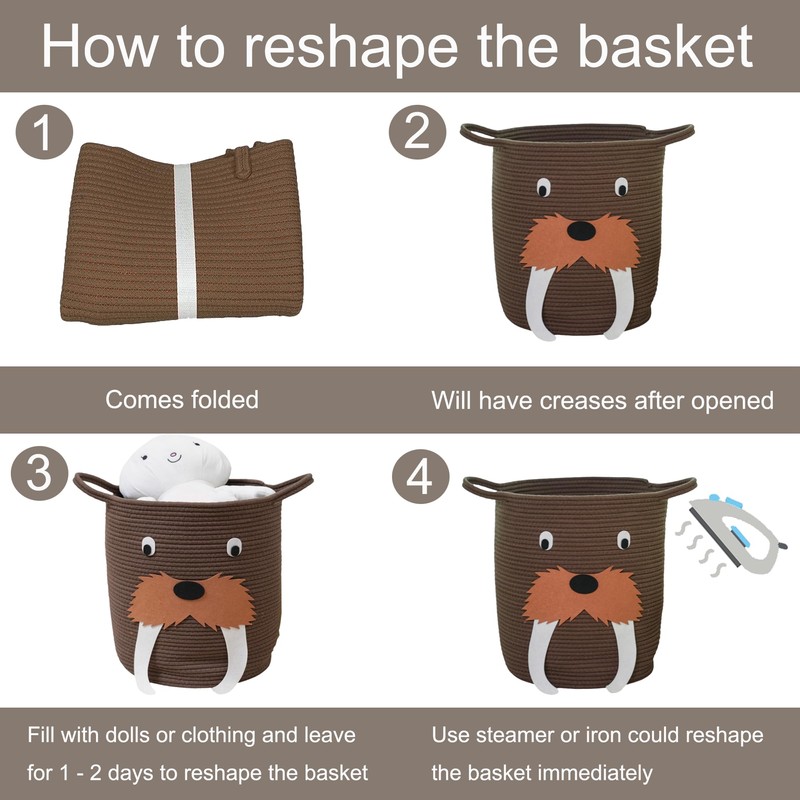 - Cute Designs for Versatile Decor: Choose from charming elephant, walrus, or boar patterns to complement girls' nurseries, boys' rooms, or modern decor. This cute hamper adds a playful touch while serving as a functional storage basket for baby toys, clothes, and linens.