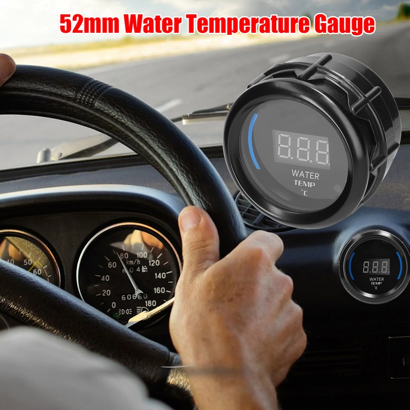 52mm Water Temperature Gauge Car Digital Meter LED Display 20-120℃ with Sensor Alarm Function for Car Truck Motorcycle
