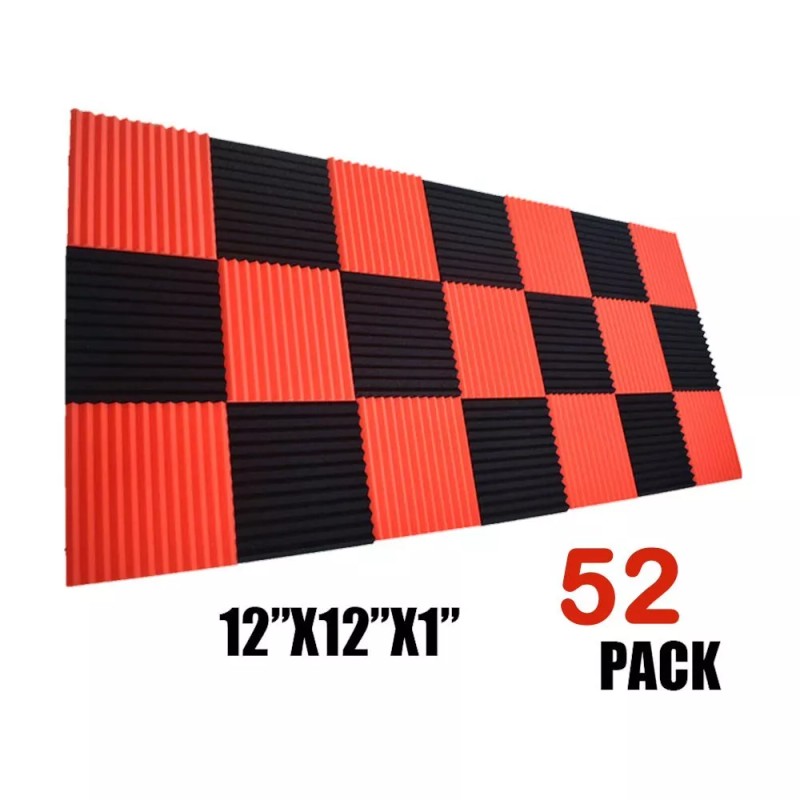 52Pack 12"X12"X1" Black Red Acoustic Foam Sound Panel Studio Recording Wall Tile