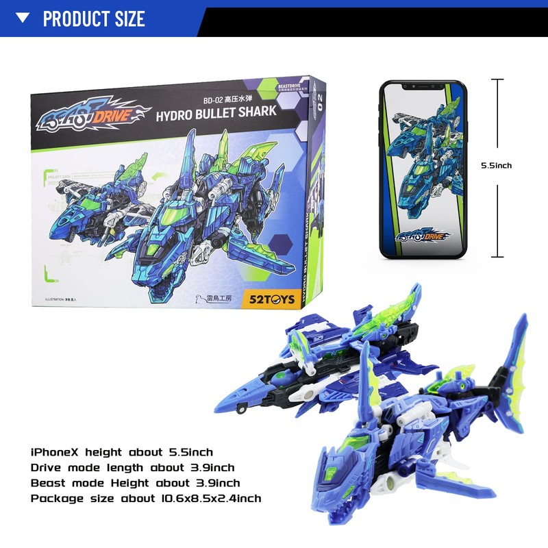 52TOYS BEASTDRIVE BD-02 Hydro Bullet Shark Deformation Toys Action Figure, Converting Toys in Vehicle and Beast, Perfect Birthday Party Gift for Teens and Adults