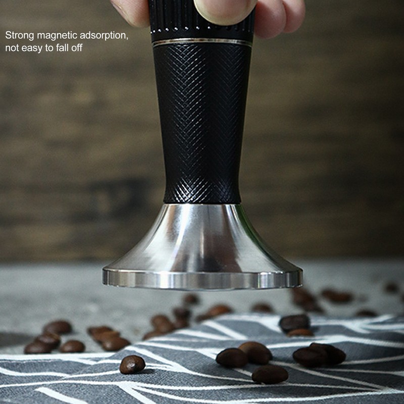 1、Elastic Needle: The texture of the needle is tough and elastic, the stainless steel material is not easy to corrode, and the hardness is strong. 2、Space Saving: The coffee tamper and stirrer needle are two in one, which can be replaced and used according to needs, and the storage does not take up space. 3、Grid Texture: The handle is designed with grid texture, which has a delicate feel and ergonomic design, which is comfortable and effortless to use. 4、Strong Magnetic Adsorption: Magnetic connection, easy to use, four level strong magnetic, adsorption is not easy to fall off, you can use it with confidence. 5、Curved Base: The curved base increases the density of the powder cake, which can avoid the coffee machine water distribution net to fix the screw.
