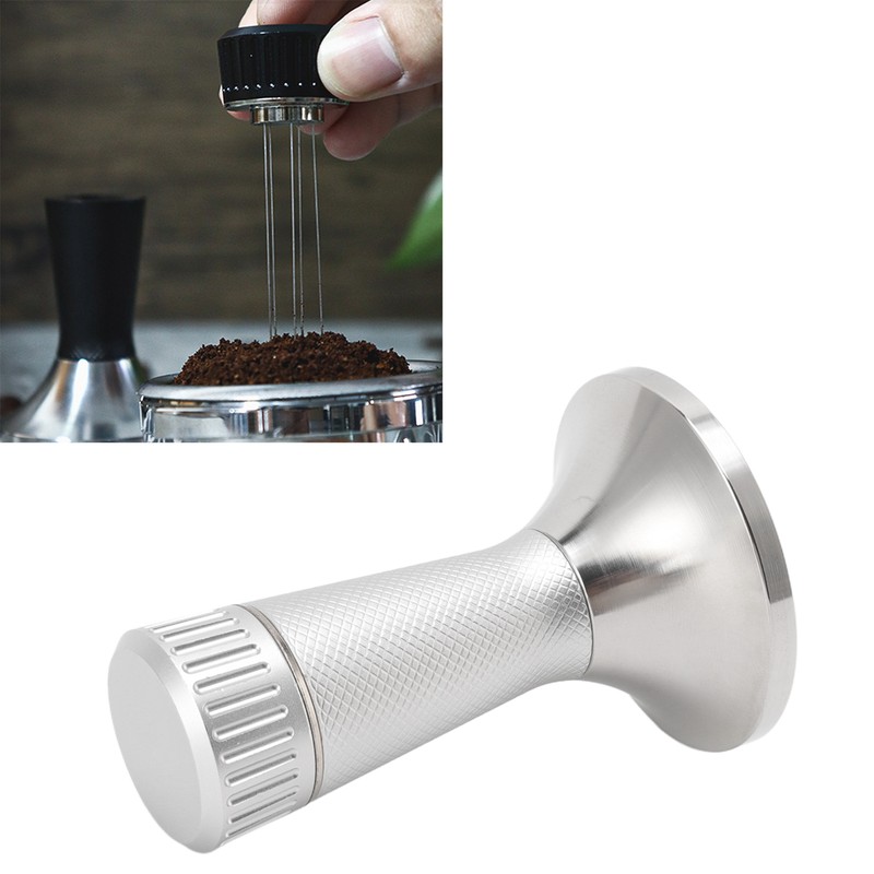 53.3mm Coffee Tamper Distributor Needle Set 2 in 1 Coffee Tamping Stirring Needle Tool Silver