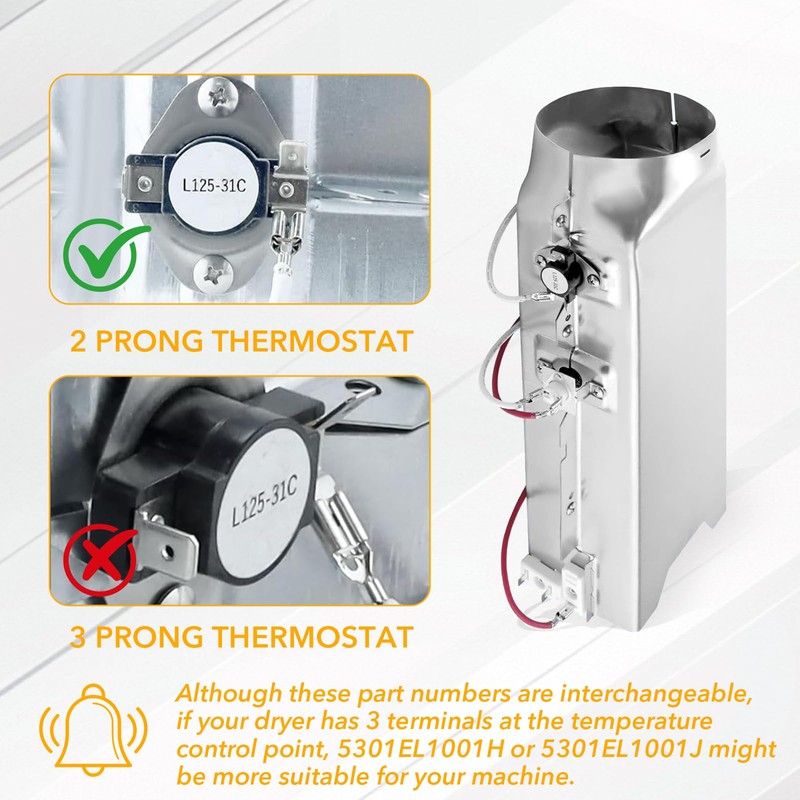 • [UPGRADED OEM MANUFACTURED STANDARD]: 5301EL1001A heating assembly offers excellent heat and wear resistance, with a nickel-chromium content of up to 85%. Heats more evenly and protects your clothes.